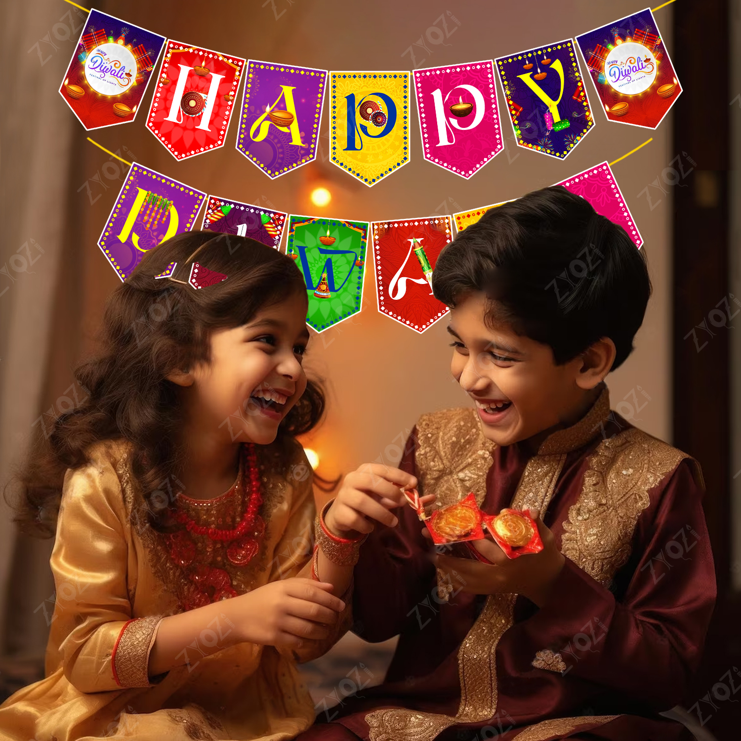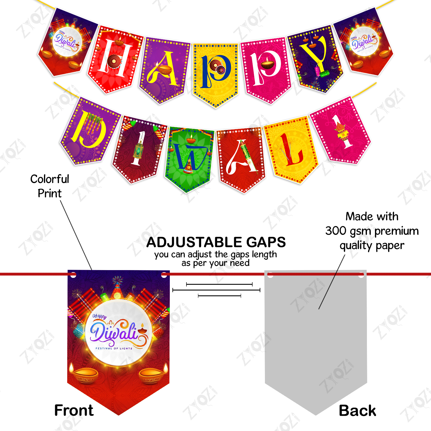 - Packing Included – 1 Pcs MultiColor Paper Banner. HAPPY DIWALI Paper Banner, which will definitely help to add more happy atmosphere of lights festival at the day!